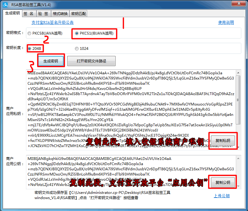 5、下载密钥生成工具,运行工具,按下图说明操作。