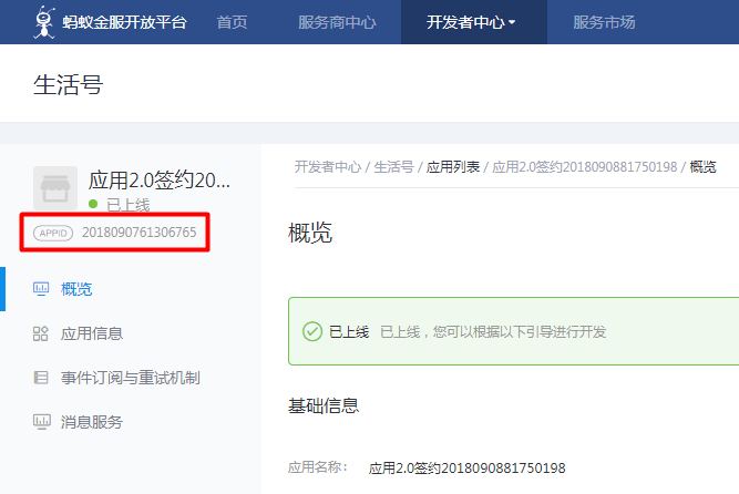 1、APPID:点此进入支付宝开放平台如图所示,找到APPID。