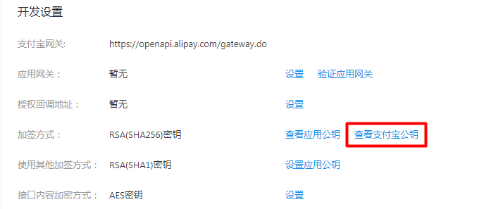 2、支付宝公钥:进入“应用信息”页面,点击“查看支付宝公钥”