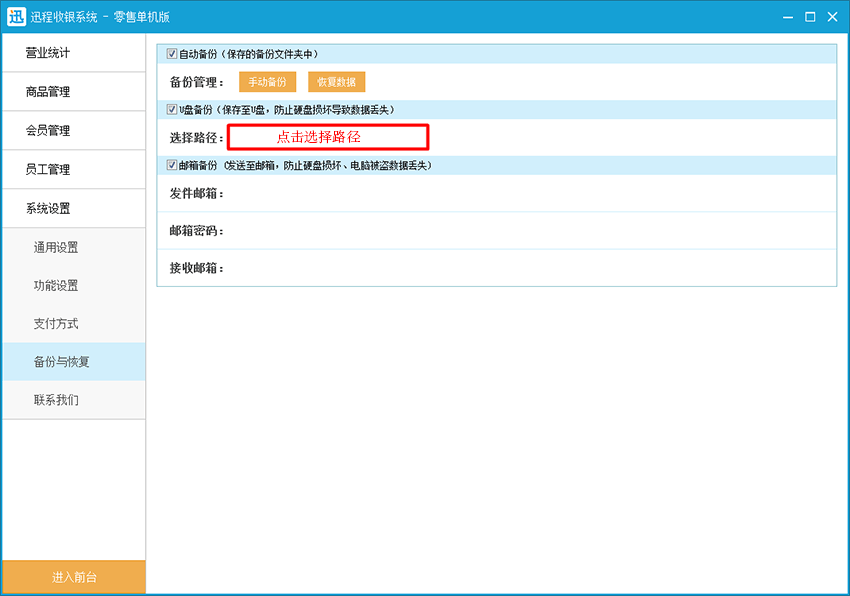 登录收银系统后台,进入系统设置->备份与恢复,进行备份设置。