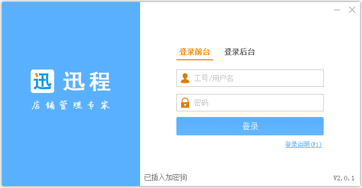 在桌面找到“迅程收银系统零售版”图标,双击运行收银系统,会出现如下界面。