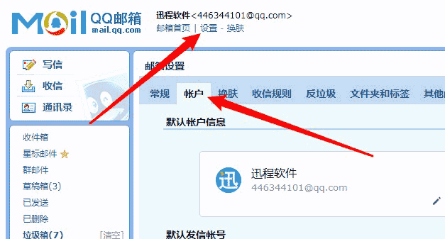 1、登录你的QQ邮箱,点击设置,进入账户设置。