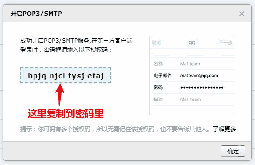 注意:邮箱密码为设置的“授权密码”并非登录密码
